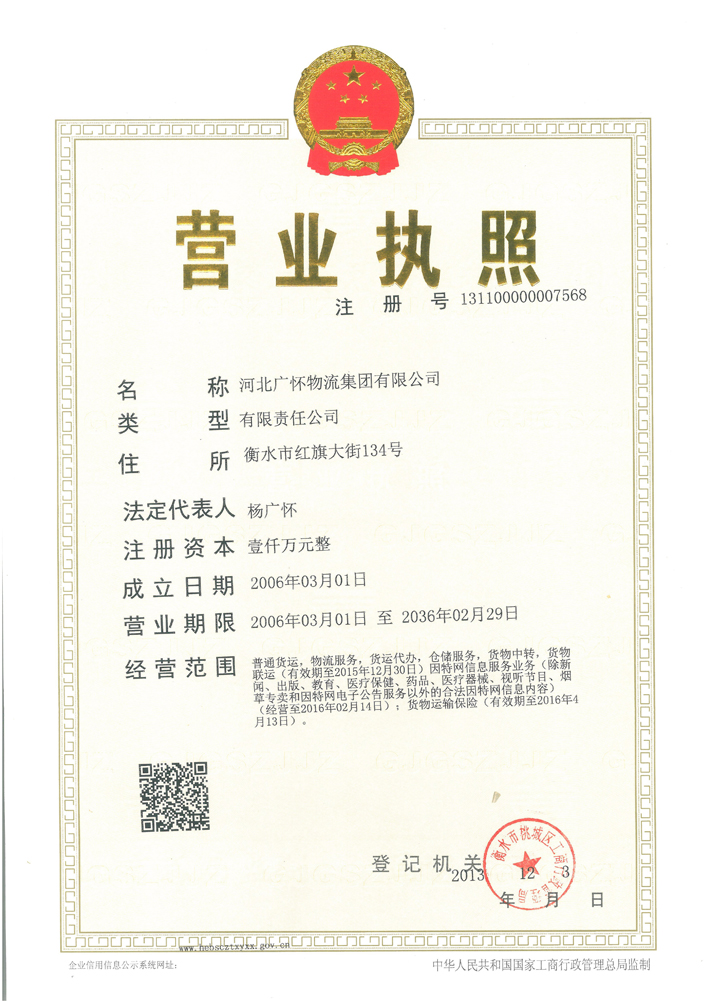 衡水广怀贸易有限公司企业法人营业执照(正本)