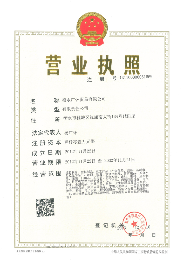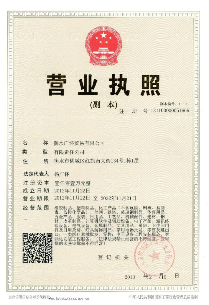 衡水广怀贸易有限公司企业法人营业执照(副本)