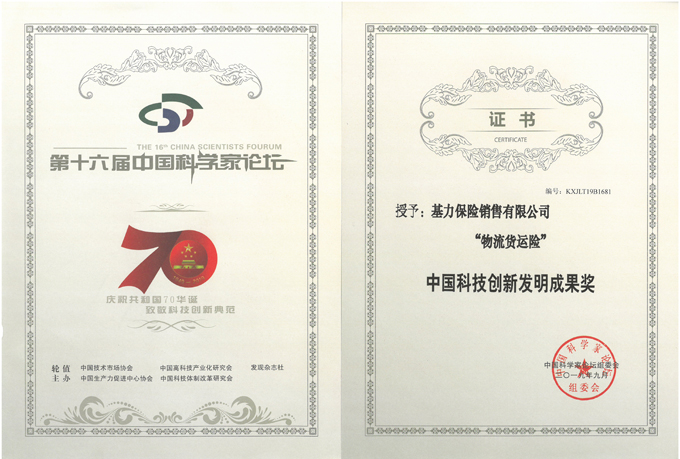 “物流货运险”中国科技创新发明成果奖-铜牌